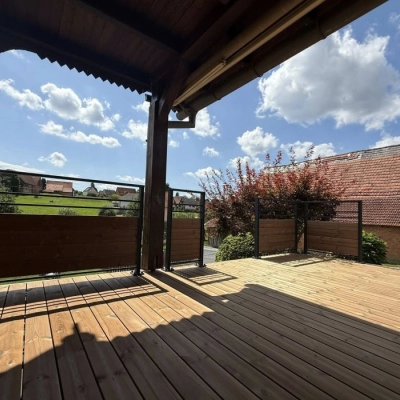 Chantier finalisé à Oberhoffen Sur Moder Terrasse en bois Thermofrêne (garantie 20 ans)