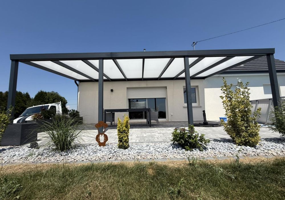 Ce type d’auvent est idéal pour créer un espace protégé tout en conservant un design léger, moderne et lumineux.